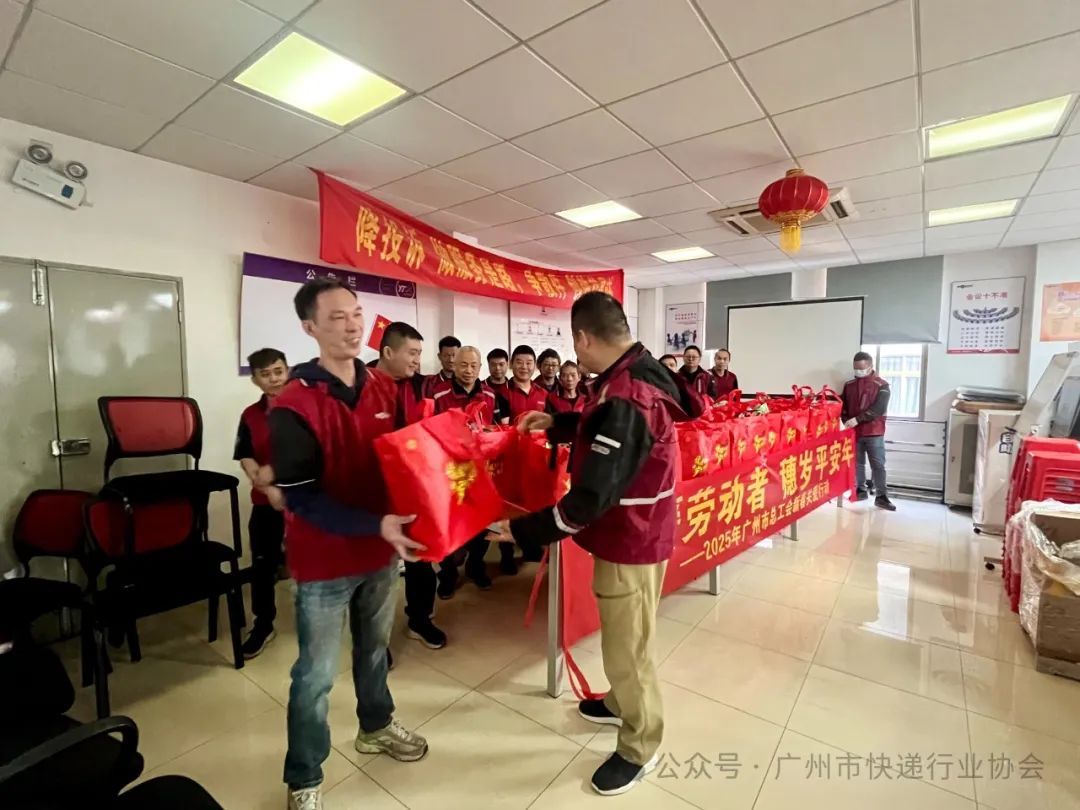 为落实省、市总工会对于开展2025年“情暖管事者 穗岁祯祥年”新春关爱作为的关系文献精神,在广东省总工会、广州市总工会的撑握和开采下,广州市快递行业工联会集合广州市快递行业协会开展广州市快递行业2025年“情暖管事者 穗岁祯祥年”热诚关爱慰问活动。本次活动共送出“新春大礼包”400份,为新春佳节遵守在一线的快递从业东谈主员们带来了党和政府、工会组织的平和和关爱。 春节的脚步日益邻近,快递员们依旧困难穿梭于三街六巷,为千门万户传递着包裹与平和。春节前收到工会的道贺和礼包,快递员们显得止境雀跃,申